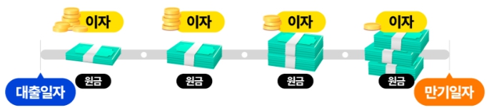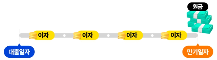 - 대출기간에는 이자만 내고 만기일 원금을 모두 상환하는 방식입니다.