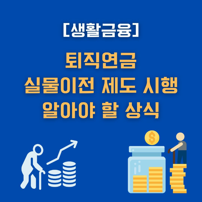최근 고령화를 넘어서 초고령화 사회가 진행됨에 따라 퇴직 후 안정적인 생활을 위한 퇴직연금의 중요성이 더욱 커지고 있습니다. 이에 따라 퇴직연금 실물이전 제도가 10월 15일부터 시행되었는데요. 이 글에서는 퇴직연금 실물이전 제도의 개념, 필요성, 특징, 절차, 유의사항, 장점 등 기본적으로 알아야 할 내요을 정리해 보도록 하겠습니다.