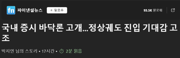 < 파이낸셜 뉴스 - 국내 증시 바닥론 고개, 정상퀘도 진입 기대감 고조>