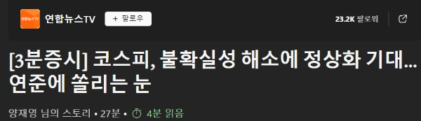 <연합뉴스 - 코스피, 불확실성 해소에 정상화 기대>