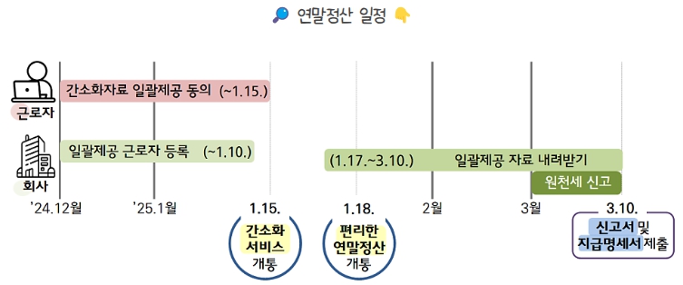 - 국세청 : 회사가 신청한 날짜에 공제자료 제공 – 1월 17일 또는 1월 20일